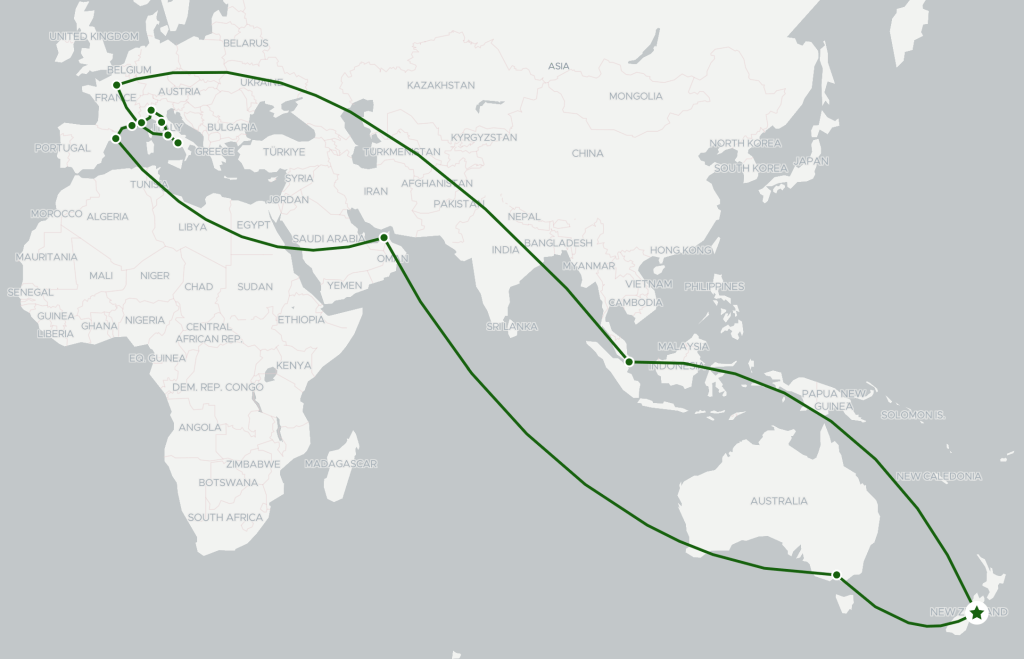 Melbourne, Dubai, Spain, Italy, France, Singapore