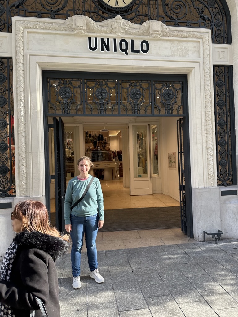 On the way up we had seen a square with lots of markets and we stopped there on the way down but there wasn’t anything open. We found a cafe where we could people watch while having our hot chocolates. The drinks themselves were pretty poor and while nice to watch people it wasn’t anywhere near as interesting as it had been the previous day in Barcelona. Lisa spotted that there was a Uniqlo in the area and so she stopped off for a quick spot of shopping (not sure how all of this is going to fit in her suitcase).