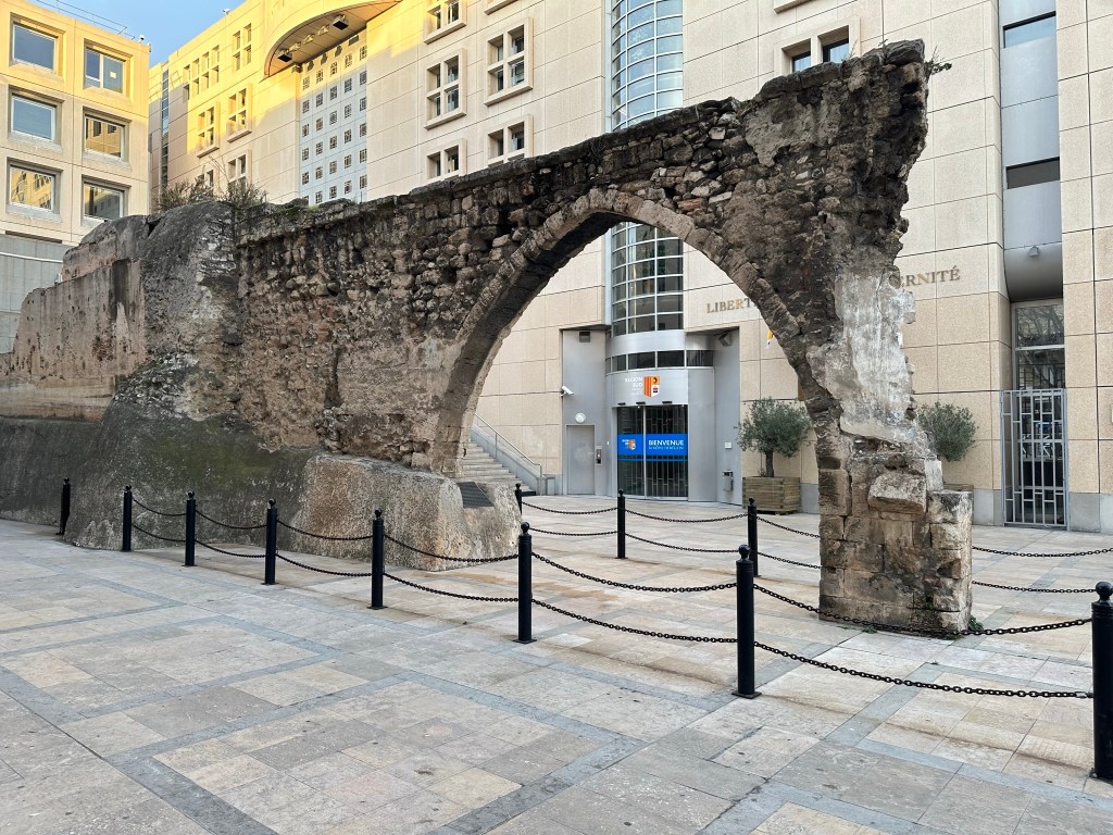 On our walk we saw the triumphant arch – it was better than Barcelona and probably related to an actual victory but we didn’t know which one. We also saw a chunk of old wall that had been retained, we guessed probably part of the original city wall.