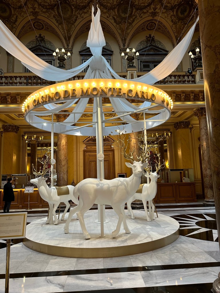 Next stop was Montecarlo which is the main commercial centre of Monaco. The main attraction there is the casino which looked very fancy. A lot of expensive cars outside, we saw three Rolls Royces (which are very ugly), a couple of Ferraris and a lot of Porsches. Antonio said with it being the low season that it was very quiet and there would be a lot more fancy cars in summer. Surprisingly they let us in the casino but the gaming floor wasn’t open and so Lisa couldn’t have a poke, which was probably for the best. There was a carousel with a moose you could sit on but Lisa refused to do this.