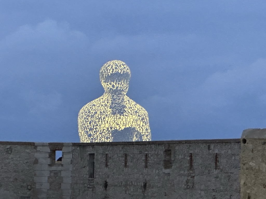 Our final stop in the tour was Antibes which is a port town. It used to be a major trading port but has been overtaken by places like Nice and Monaco. It is still important for the very large boats which can’t fit in the other ports such as the king of Saudi Arabia’s yacht which is massive. We were pretty tired by this point and it was probably one stop too many on the tour. We tried to get a beer but the service wasn’t great. Instead we walked the city wall and saw a weird head sculpture.