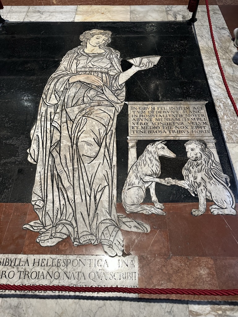 - The cathedral was very impressive. It was meant to be larger than the one in Florence (back to the rivalry) but the extension wasn’t completed however you can still see the work they did. The cathedral they did finish had some amazing artwork. In particular a small room had fantastic frescos that had never needed to be restored. The floor also had a lot of amazing pictures which makes the cathedral quite unique