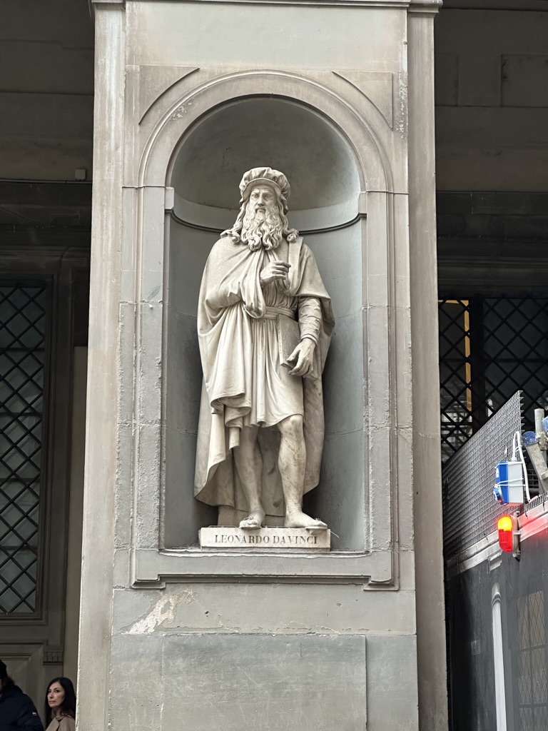 - Outside the Ufezzi gallery there were statues of all the important men of the city, including Michelangelo, Leonardo, Donatello, Galileo, Machiavelli.