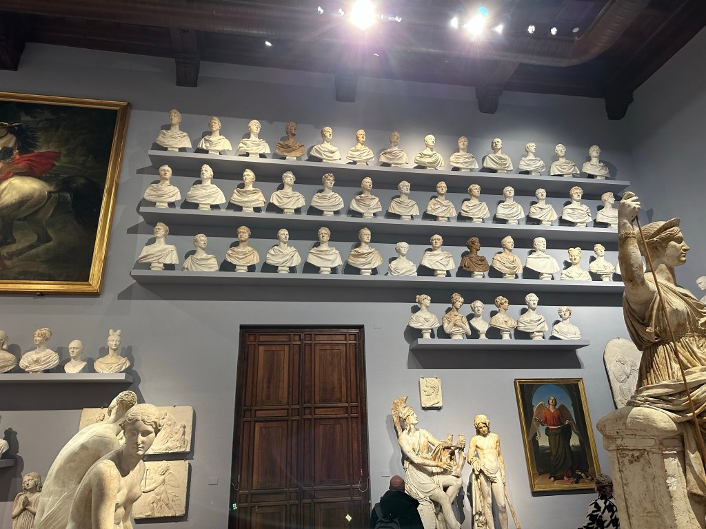 Lisa spent an hour in the gallery and I spent two. They had some other incomplete statues by Michelangelo. There were a lot of paintings by various Italian painters. Most interesting was a room full of plaster casts from a sculptor. The sculptor used them as part of their process before they started sculpting the marble. It was creepy seeing all of the casts in the room particularly with all of the heads.