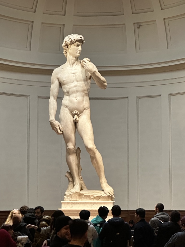 It was then off to the Academy gallery where the David is located. David is certainly very impressive and your eyes are drawn to it as soon as you see it. The statue is large and incredibly detailed. You can see the veins in his arms, his ribs, his finger nails. It just seems so amazing that something that intricate could be carved from a massive piece of rock. It also leaves no margin for error if too much is removed, as clearly Michelangelo wouldn’t be able to undo any mistakes. Even Lisa was quite impressed by the statue, and it is hard for Lisa to be impressed by art.