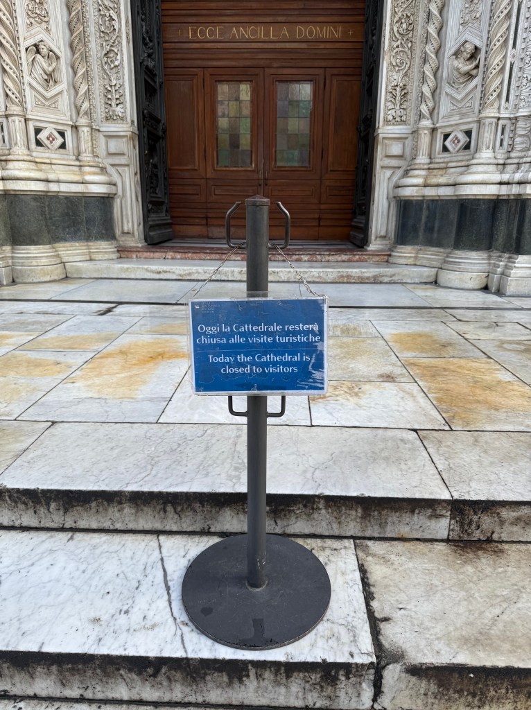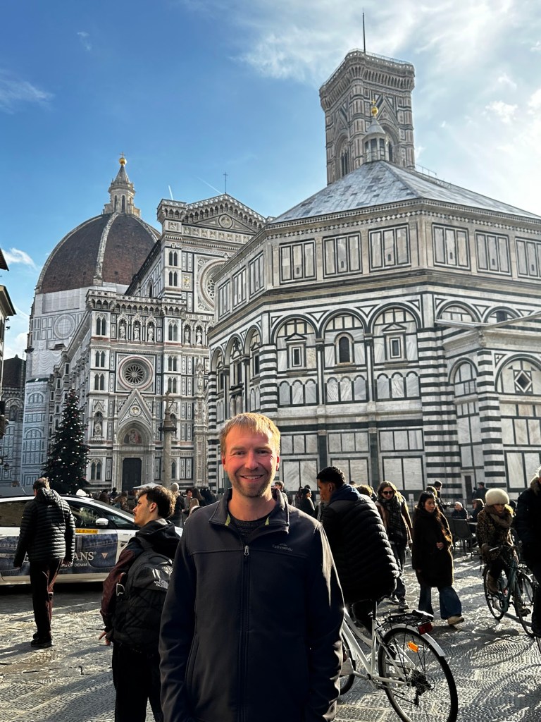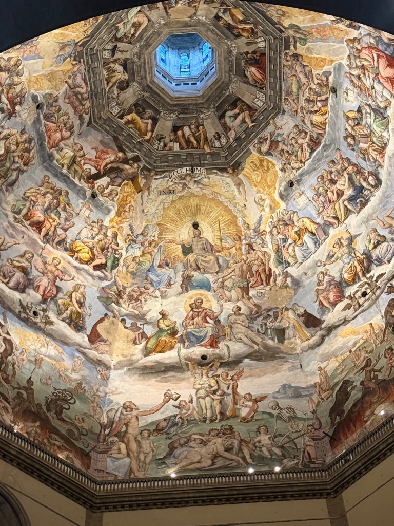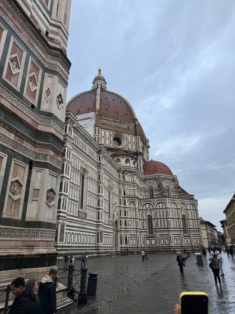 - We came back to do two key things we missed from last time: Ufezzi (after I lost the tickets last trip) and the cathedral. We ticked both of them off, which I didn’t think we would be able to do yesterday after the cancelled tour and feeling like unwell. Good to have them done. The Ufezzi was good and happy to have done it, but didn’t live up to the Prado in Madrid or the Louvre. The cathedral – 9/10 outside, 3/10 inside
