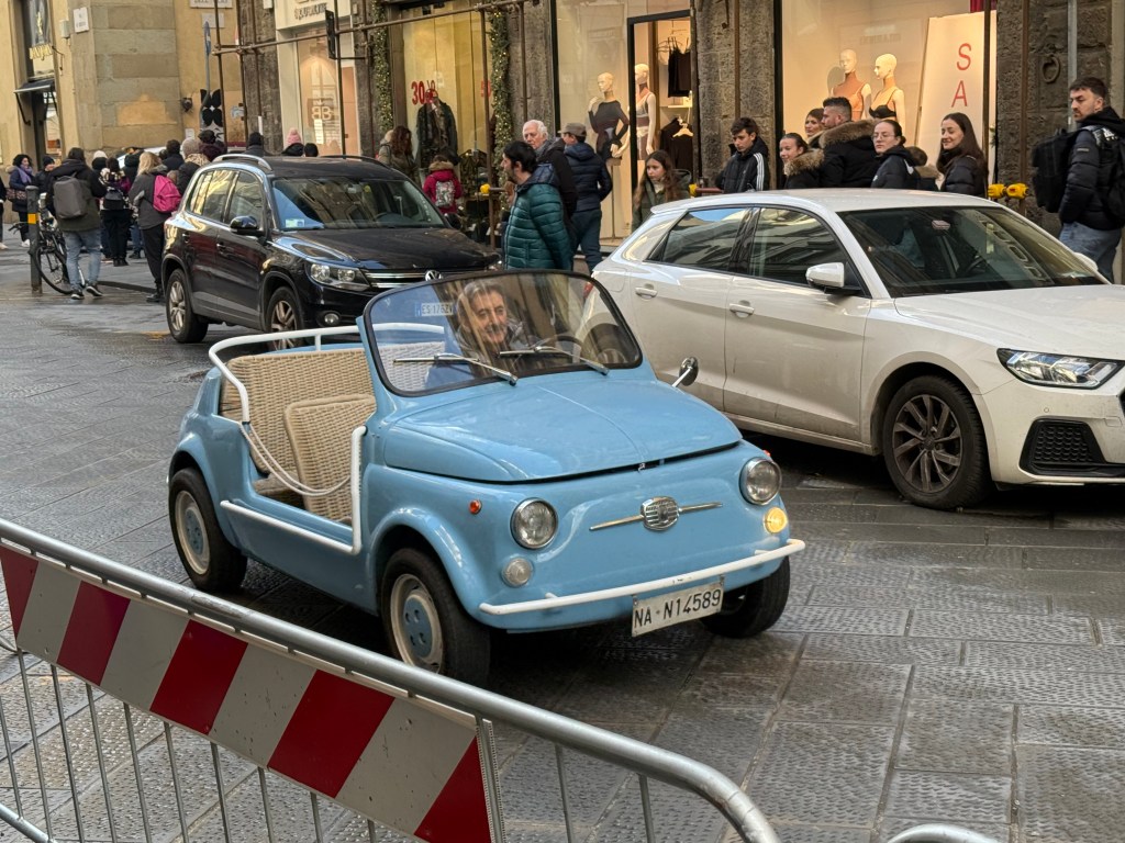 We caught the train from Bologna to Florence, just over half an hour which was nice and quick. Thankfully they had our room ready when we arrived. After a quick rest to regather energy we ventured out into Florence. As we walked down the main street a whole stream of old, classic cars drove past. Obviously some sort of rally but for us a really random experience.
