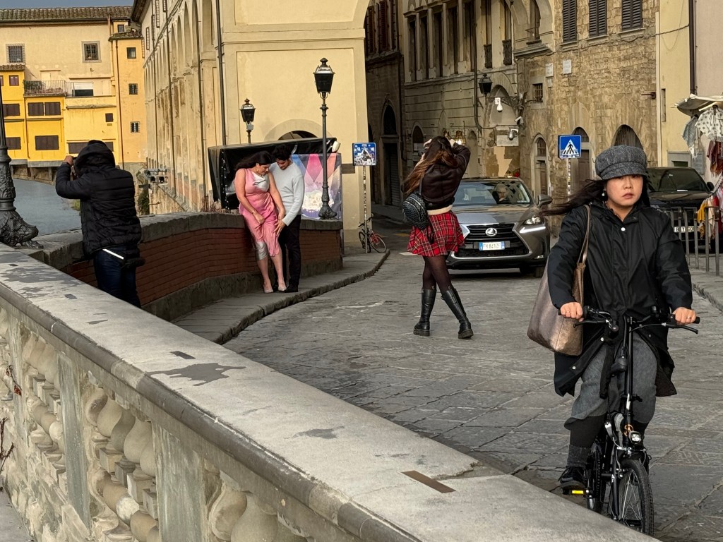 We walked down to the Ponte Vecchio bridge. Along the river there was a couple having Instagram photos taken, so funny to watch.