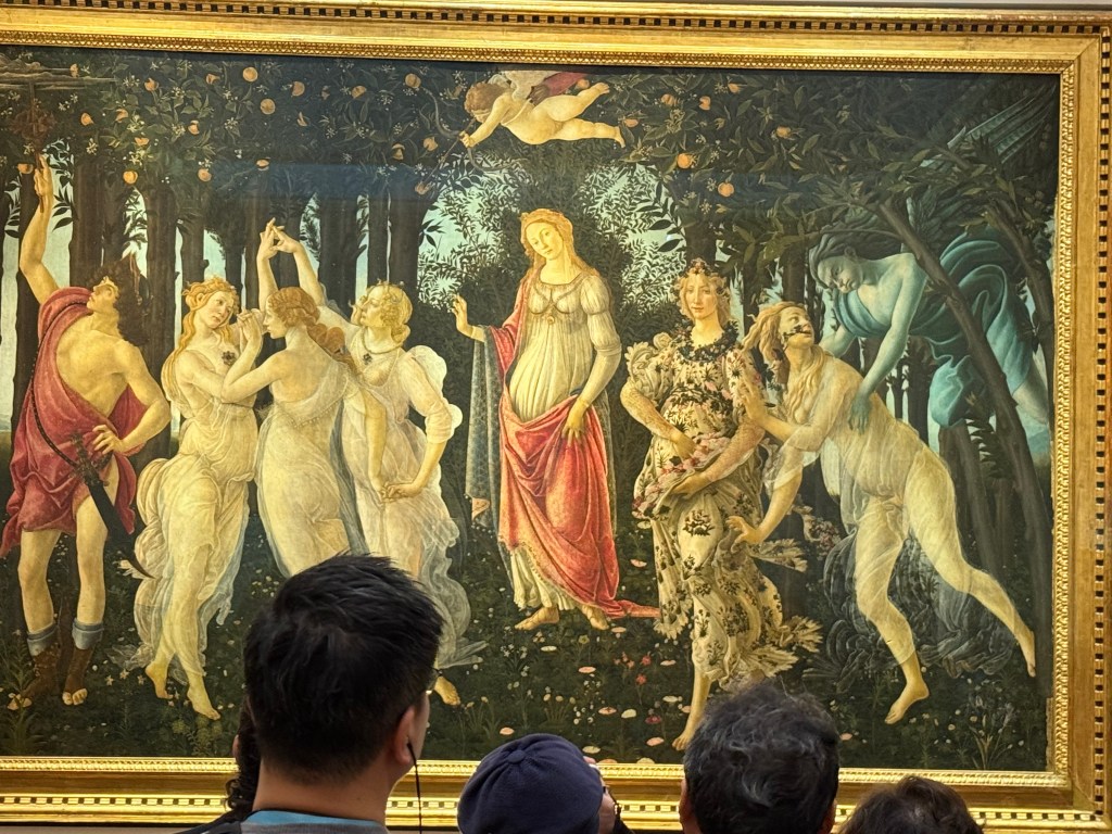 We had a guided tour of the Uffizi booked in for today and yesterday I thought there was no chance I would make that. But I was feeling a bit better this morning after a better night’s sleep and so I decided to brave it. Our guide was Francesca and she knew a lot about art. It was a very good tour that covered the masterpieces in the collection. After the tour finished we were able to stay in the museum which we did for several hours.