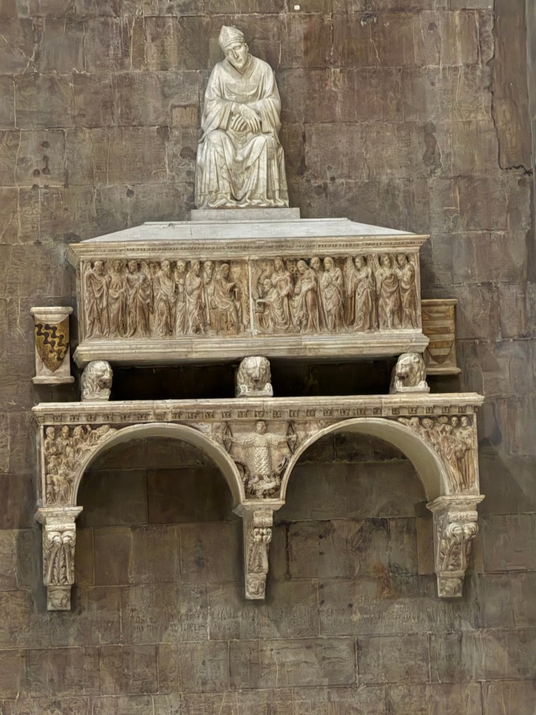- There was a tomb built into the wall. It included a sculpture of the person buried inside in the pose he was in when he died, which was an interesting choice
