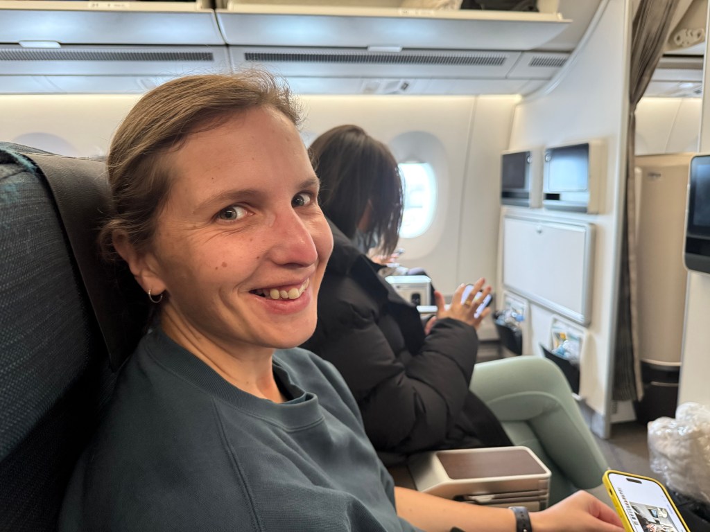 We had been successful in bidding for an upgrade to premium economy for this leg of the journey. The extra leg room was very much appreciated. We sat on the tarmac for an extra hour or so – something to do with fog and deicing. Lisa was distinctly unimpressed as it triggered her after having to wait four hours on the tarmac for deicing last year in Frankfurt. I watched the Wolf of Wall Street which was fantastic and made me question why I hadn’t seen it before now. I also watched All the President’s Men about the watergate investigation by Woodward and Bernstein – it won a lot of awards but wasn’t a compelling movie. It was a good flight except my headphones had issues with the plug and so had to held in a particular spot or they didn’t work which was very frustrating.