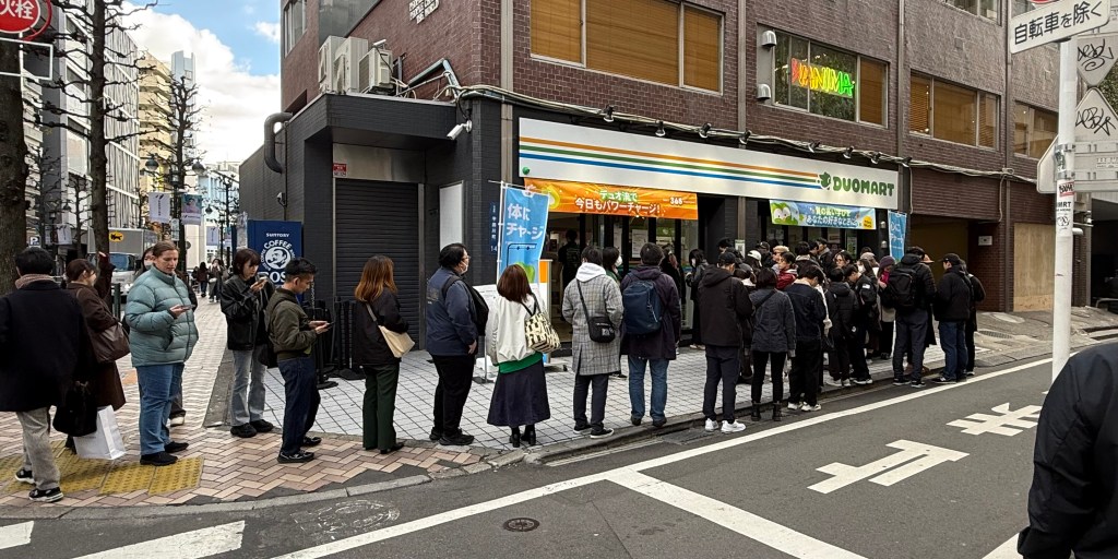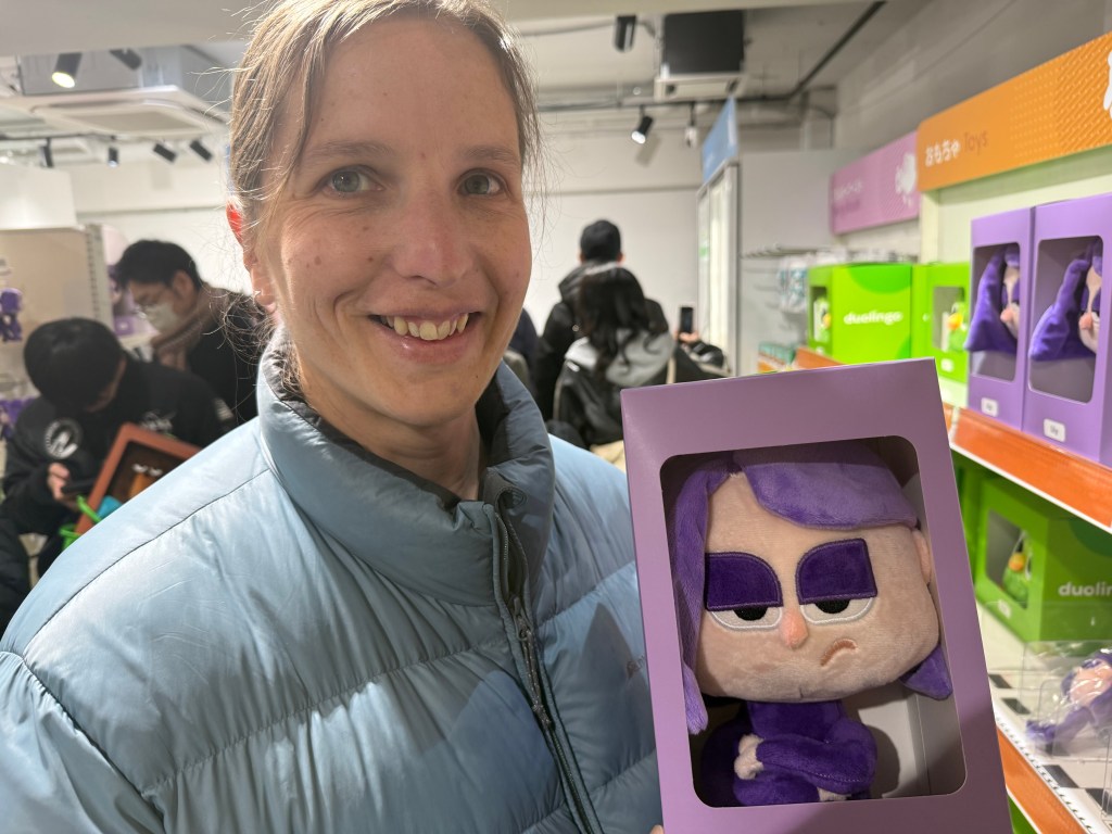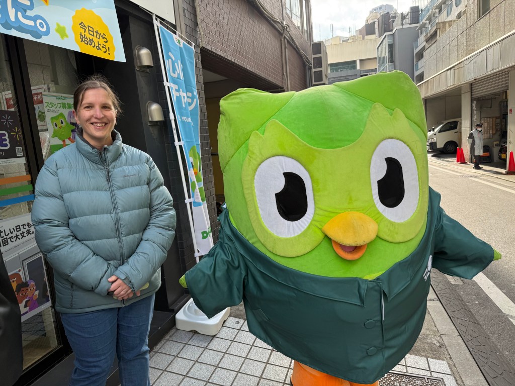Lisa had discovered there was a pop up Duolingo shop in Shibuya. We arrive fifteen minutes before opening and there was already a substantial queue. People were very excited and some were purchasing lots of merchandise. Lisa purchased a bag and got a free sticker for being a loyal member. We also managed to get a photo with Duo who is the owl from the logo. I didn’t really understand any of it. But it made Lisa very happy and that was the goal!