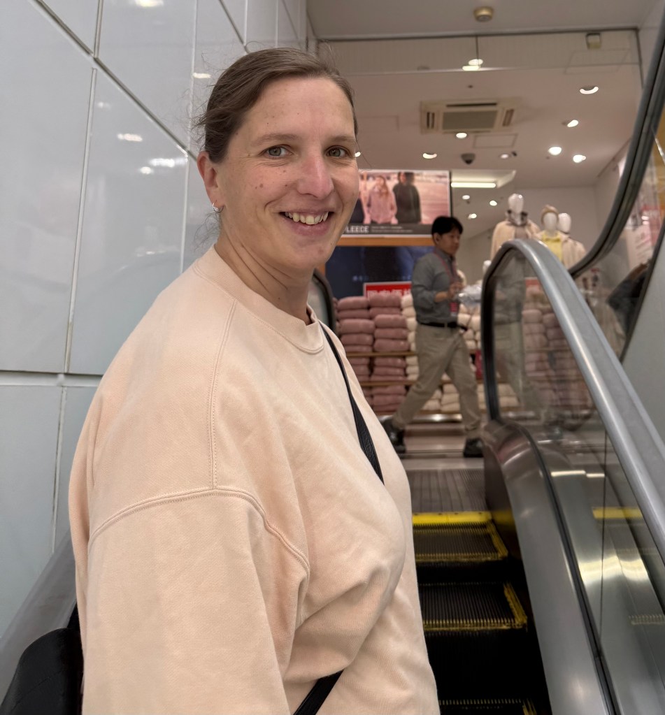 Final day in Japan. I had previously been to Uniqlo and spotted a couple of items which made Lisa excited. We started the morning by being the first (actually second) people into the shop when it opened at 10am. Lisa was so excited – like a child on Christmas Day! I did my purchasing – very good prices here and made even better by being able to get them tax free for another 10% off.