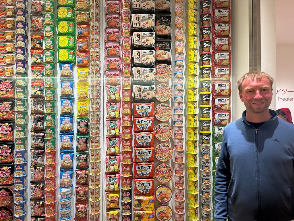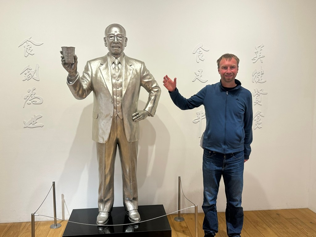 Next stop was the cup of noodles museum. This had some good information about the history of the product. It was started by Momofuku Ando who came up with the concept for flash fried noodles that could be stored and then rehydrated by adding hot water. This was what he called chicken ramen but became known as magic ramen. Years later he came up with the idea of putting them in a cup to make it even easier – this came from a trip to the USA where he realised people would eat them with a fork and wanted it to be even faster. He developed some cool technology for putting the cup on top of the noodles rather than putting the noodles into the cup – there was a lot of propaganda around what an amazing idea this was. There were many competitors who were creating sub standard noodles. He shared his patents with them to increase the quality and safety for everyone. His last invention was for “space ram” – which is instant noodles that can be eaten in space, quite a niche market.